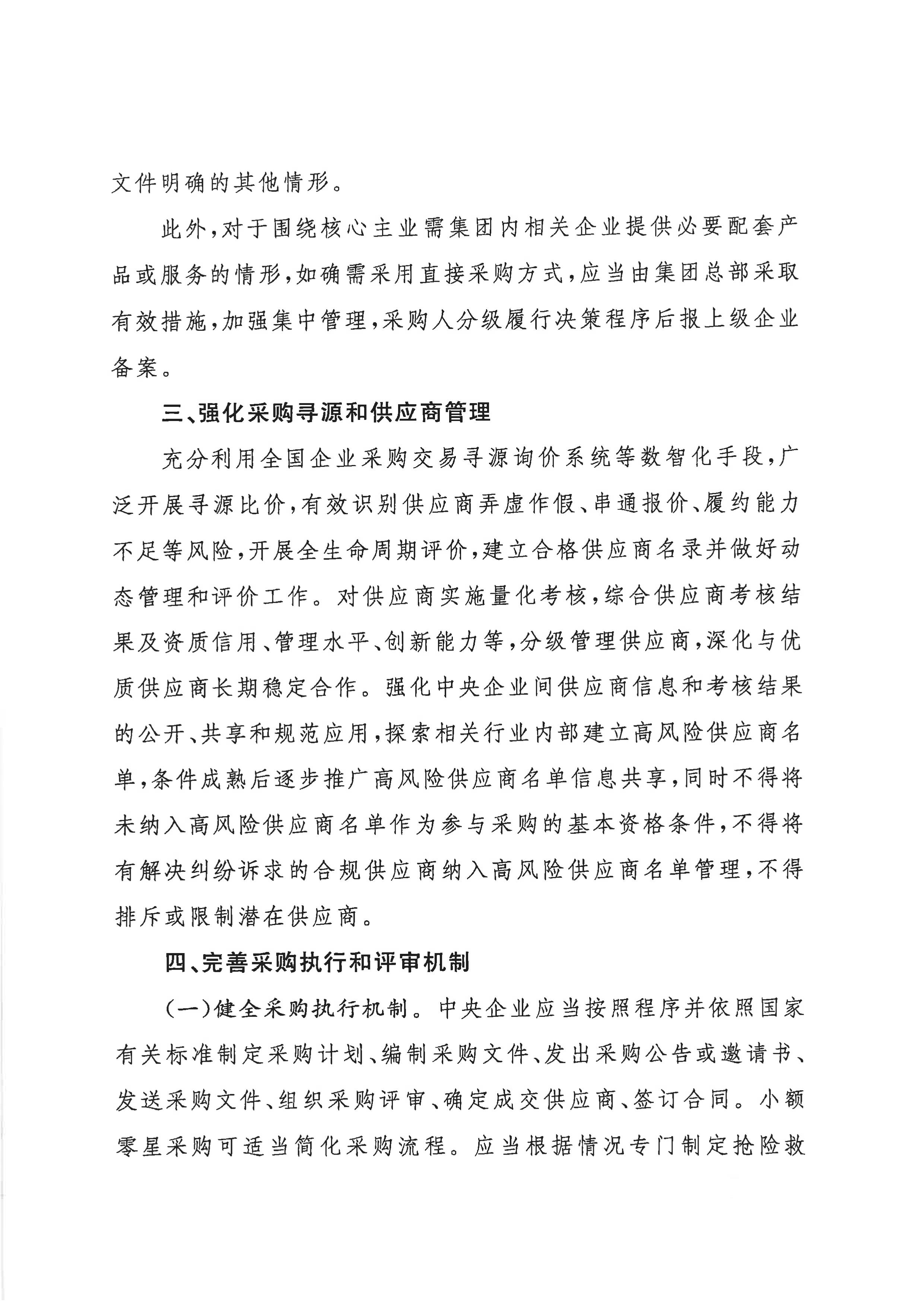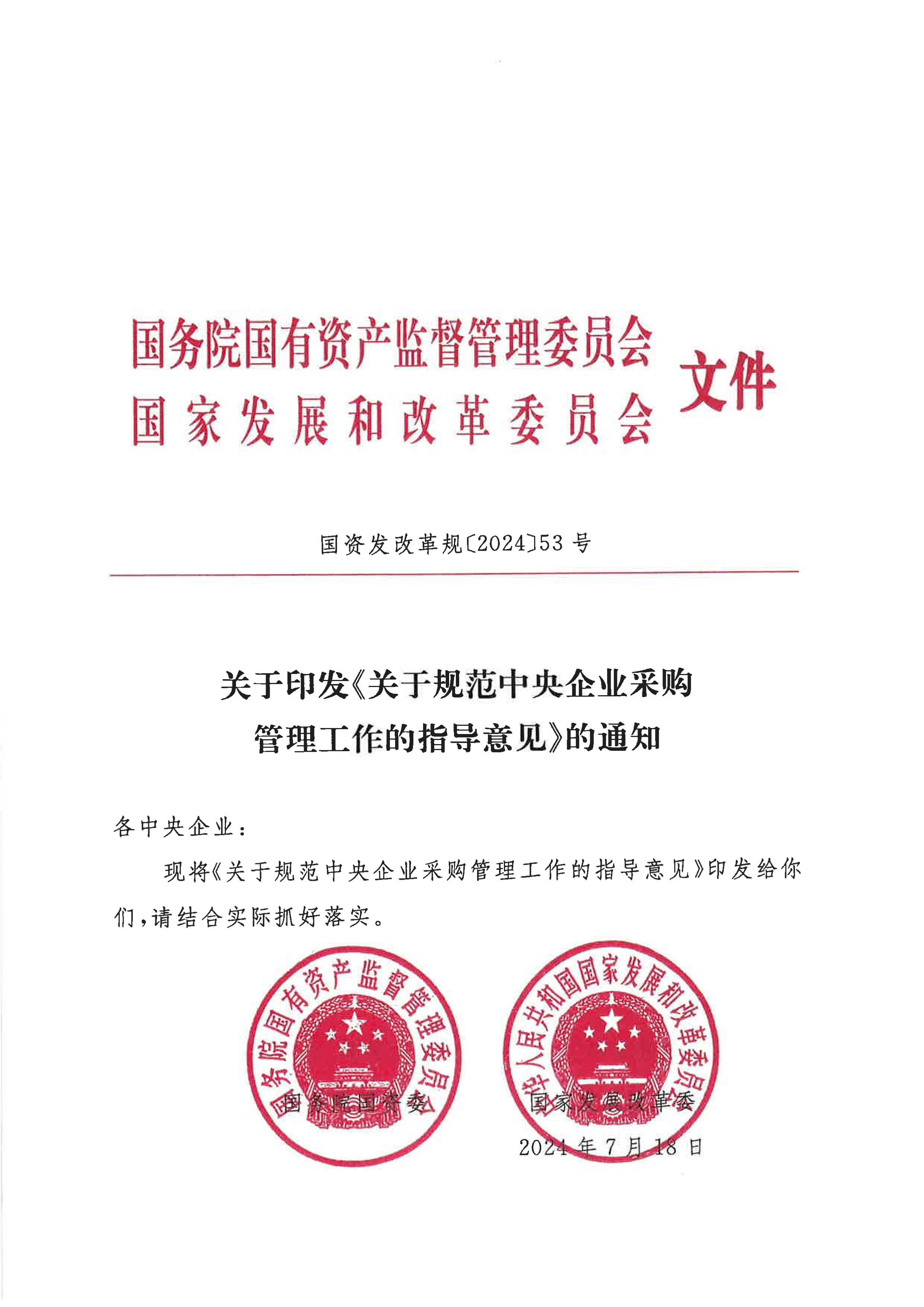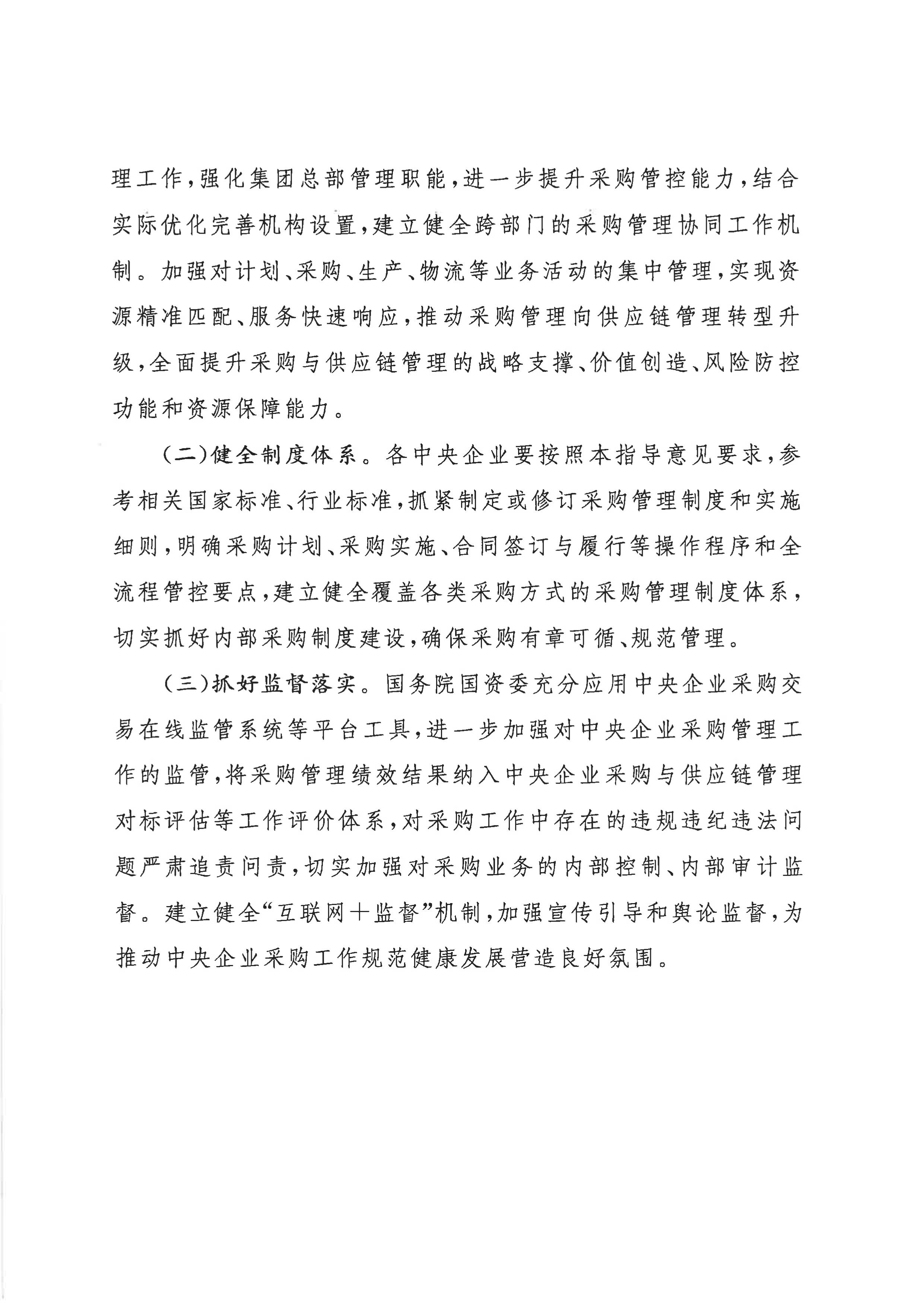 關于印發《關于規范中央企業采購管理工作的指導意見》的通知
