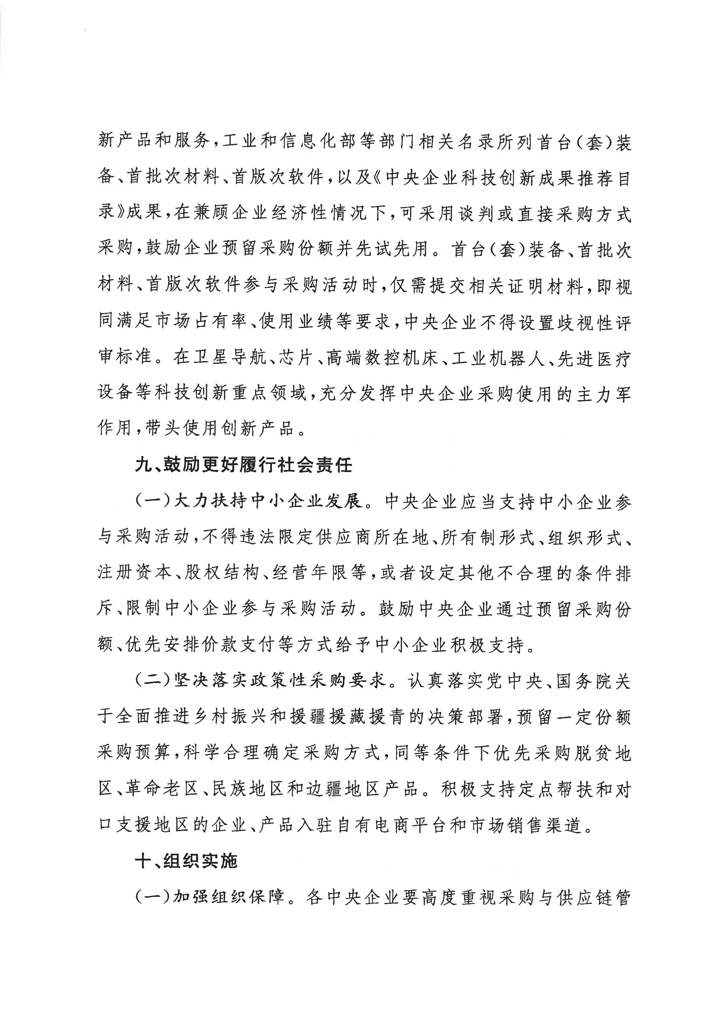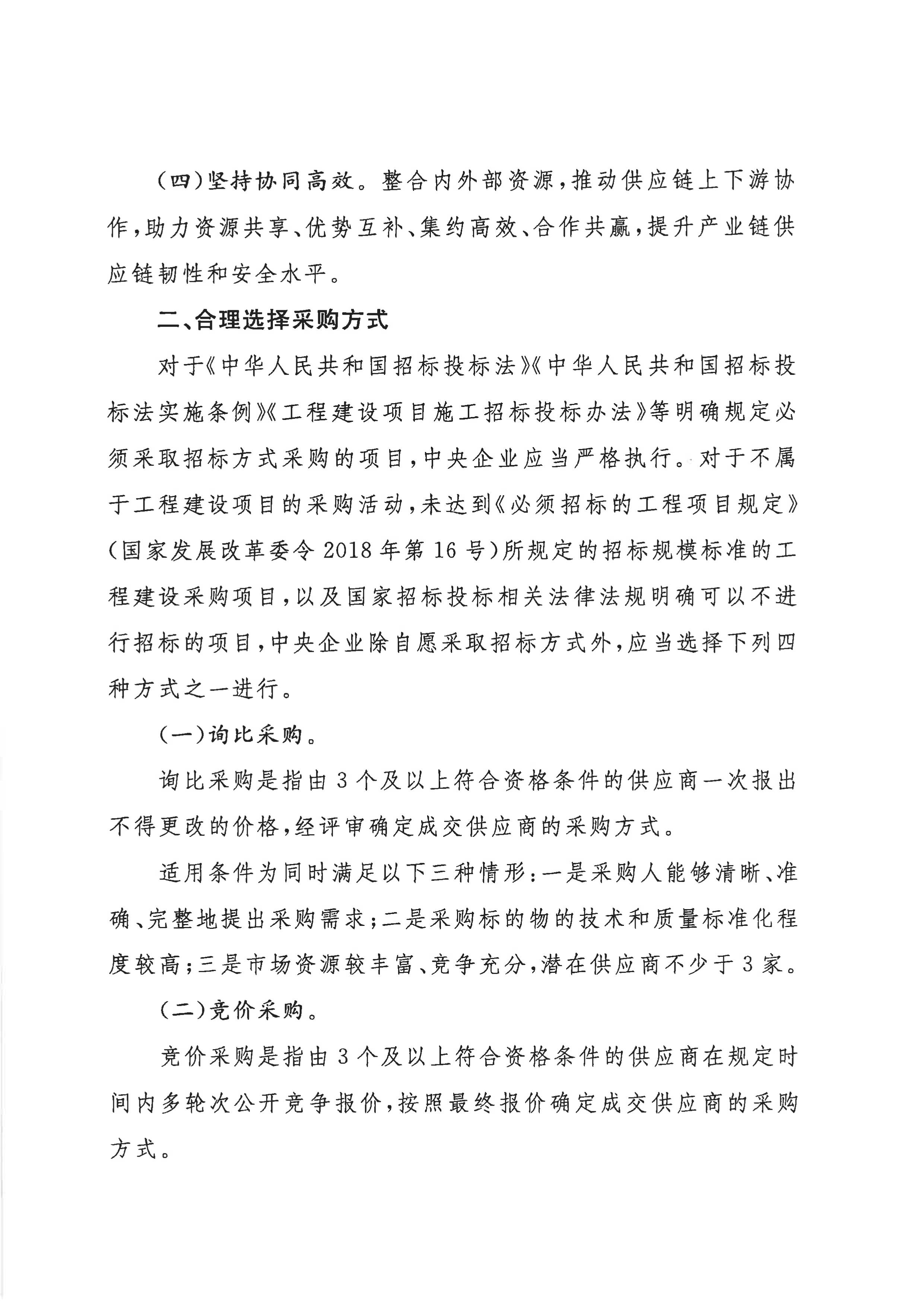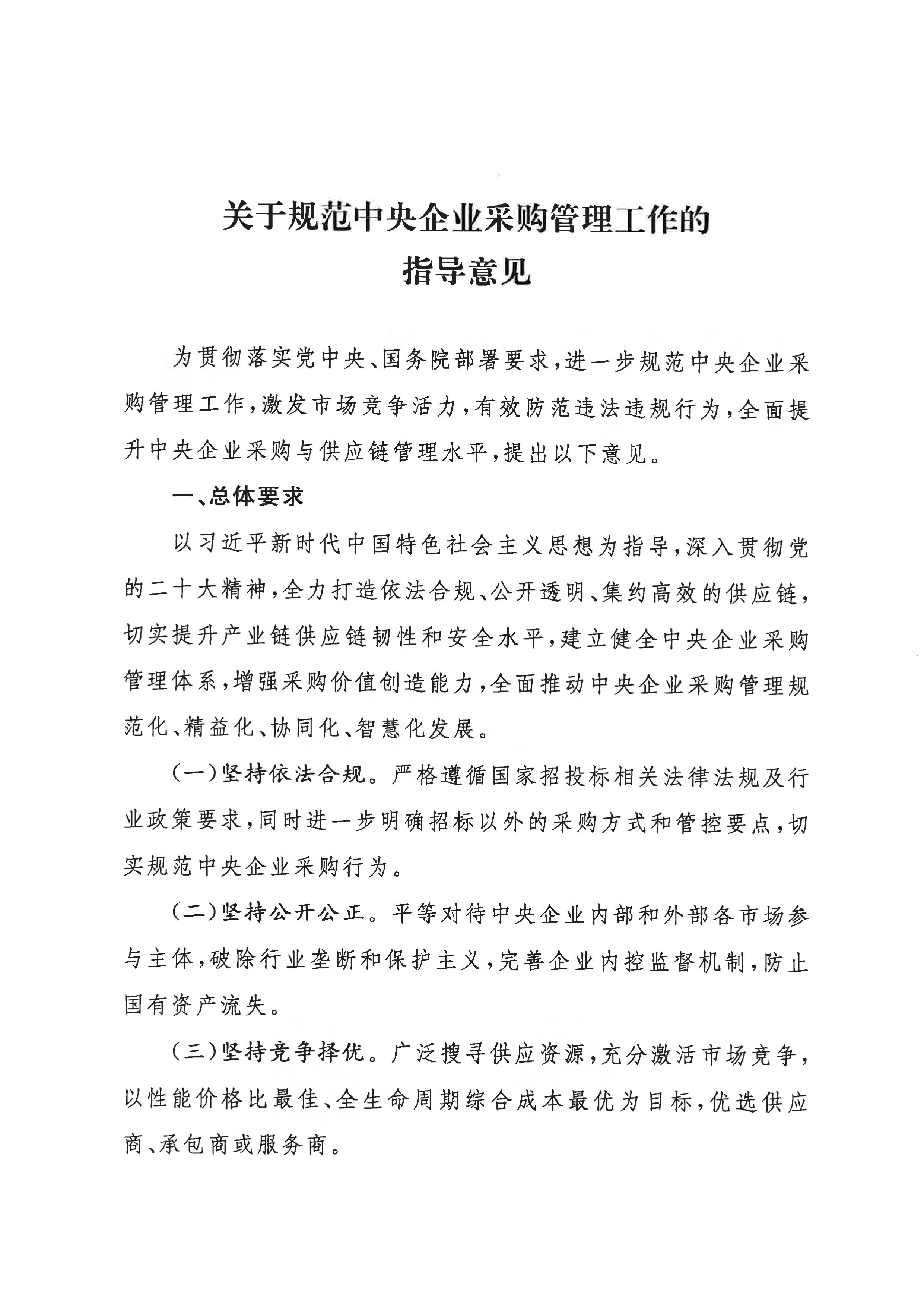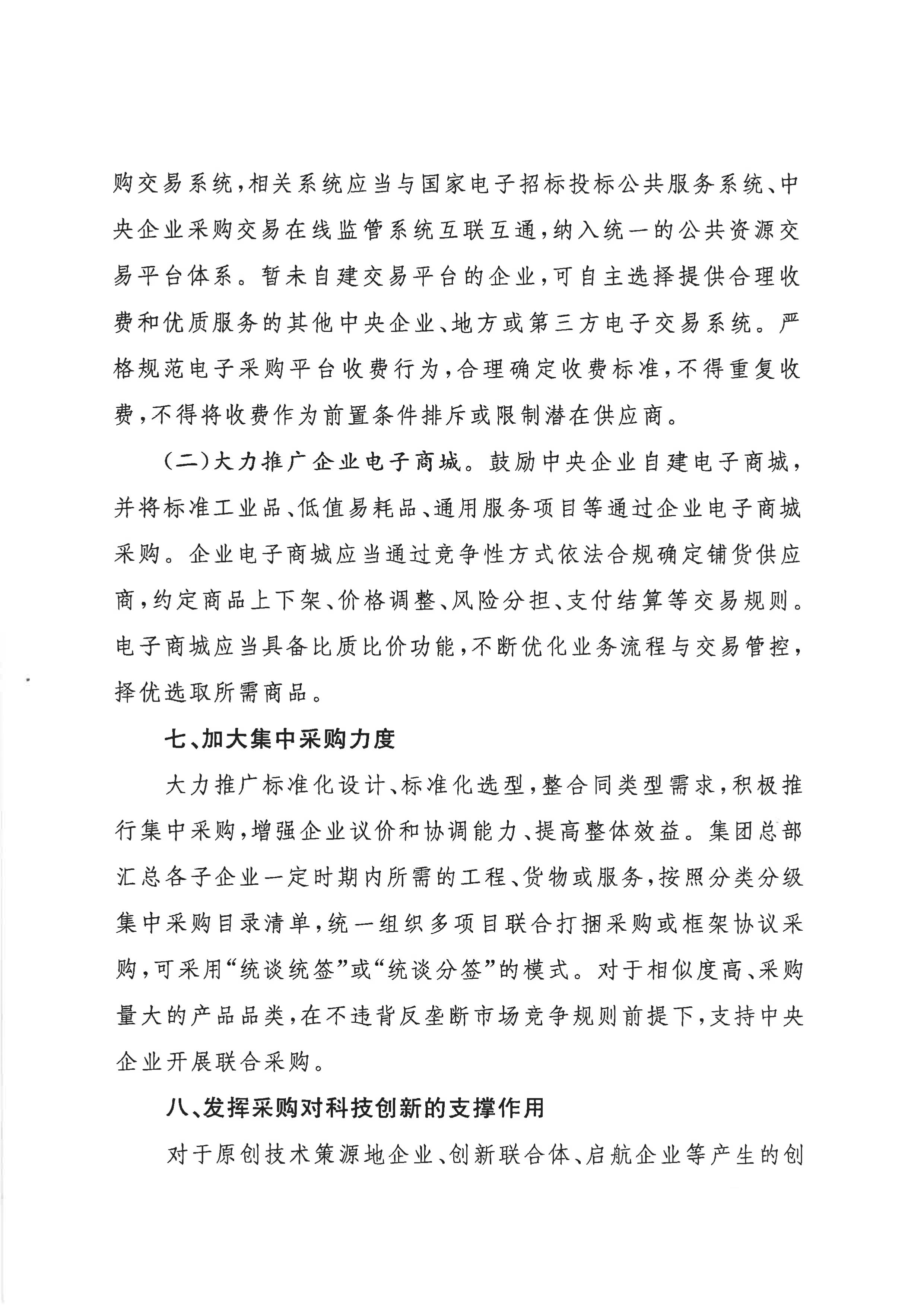 關于印發《關于規范中央企業采購管理工作的指導意見》的通知