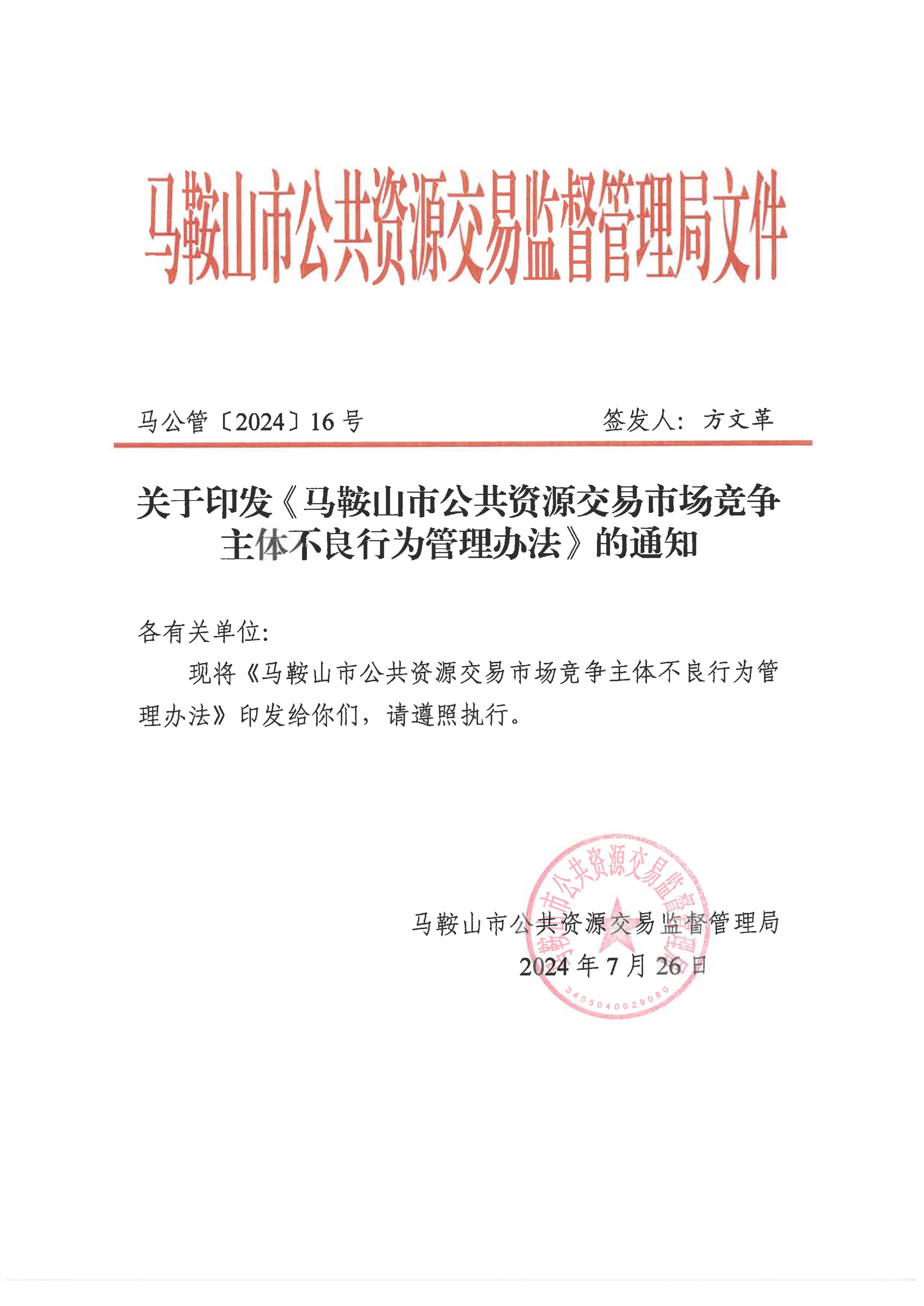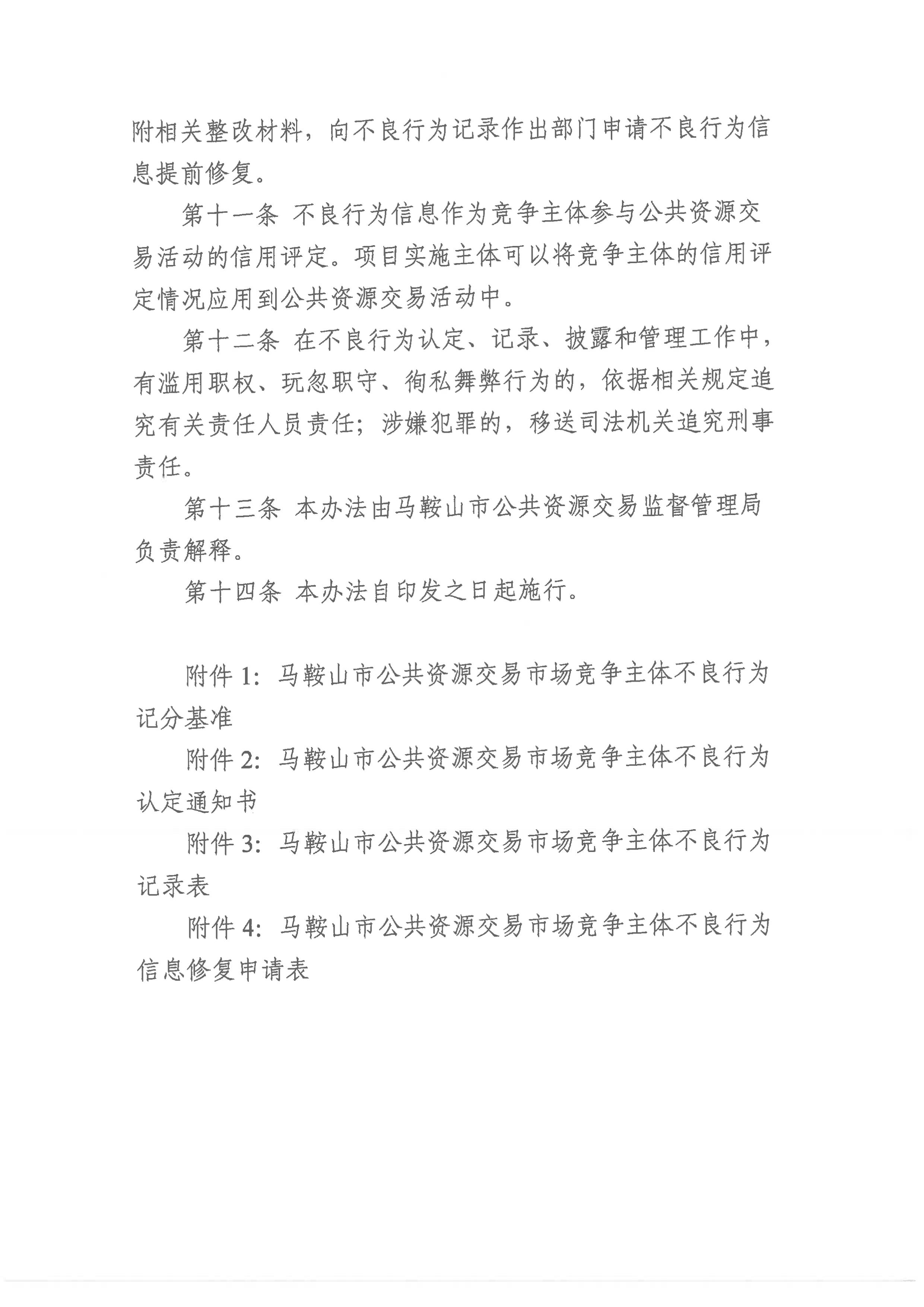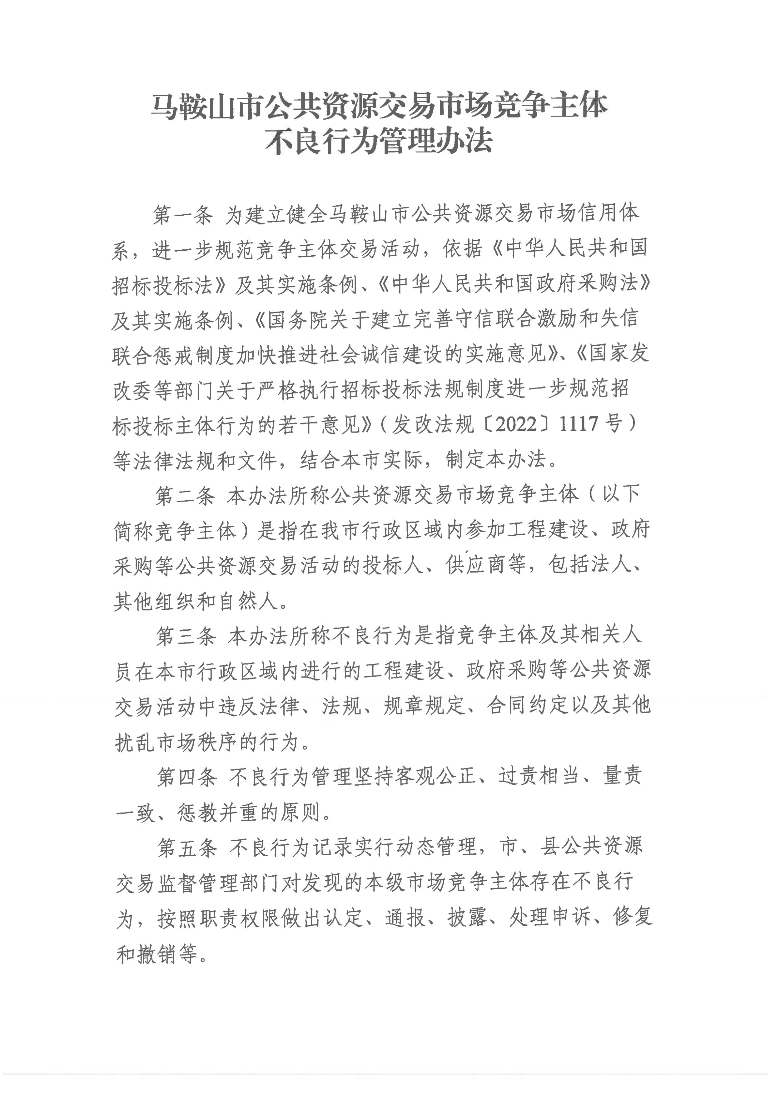 關于印發《馬鞍山市公共資源交易市場競爭主體不良行為管理辦法》的通知